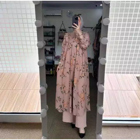 Tampil anggun dan feminin dengan dress motif bunga vintage. Potongan flowy dan aksen kerut/rempel pada dada memberikan siluet cantik yang nyaman dipakai seharian. Sempurna untuk acara santai maupun formal. Warna sage green yang adem dipadukan dengan motif bunga dusty pink. Desain modest panjang dan lengan balon. Padukan dengan celana kulot kontras untuk look yang segar dan stylish!